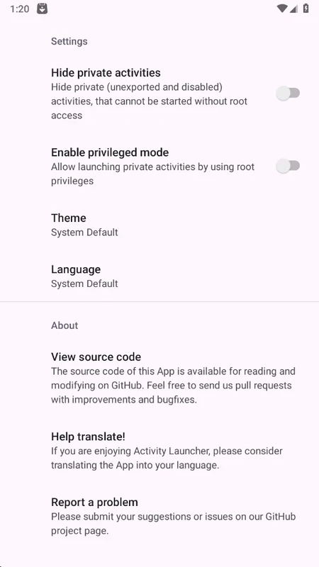 Activity Launcher is an open-source and free app that is a part of System Utilities, and is published in the System Maintenance list of apps. It was developed by Adam Szalkowski and was released in 2013. It is regularly updated by the developers, so you can reliably use it for the latest Android versions as well.